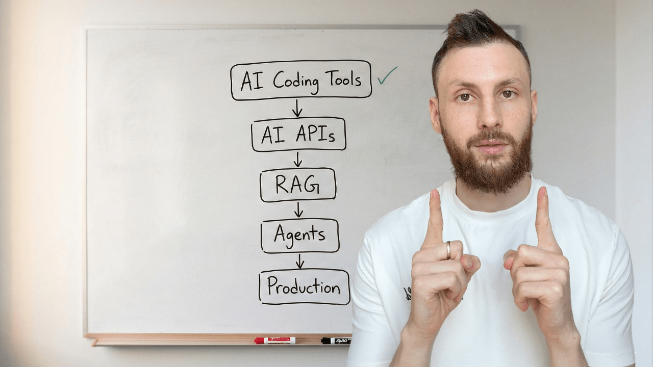 This is the in-between. Five stages, from using AI coding tools to shipping AI features in production. Each stage: what to learn, what to skip, what to build, and when you’re ready for the next one.