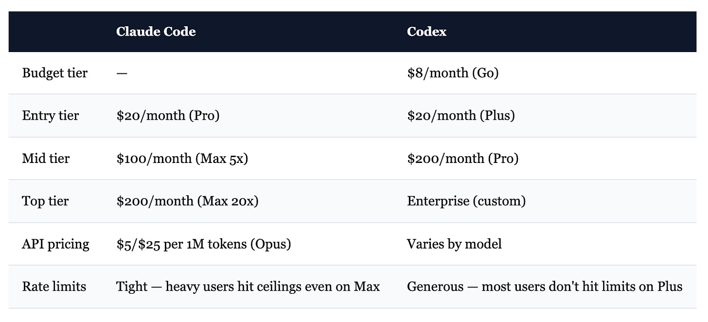 Honest summary: Codex gives you more output per dollar. Claude Code gives you better output per task. Both things are true.